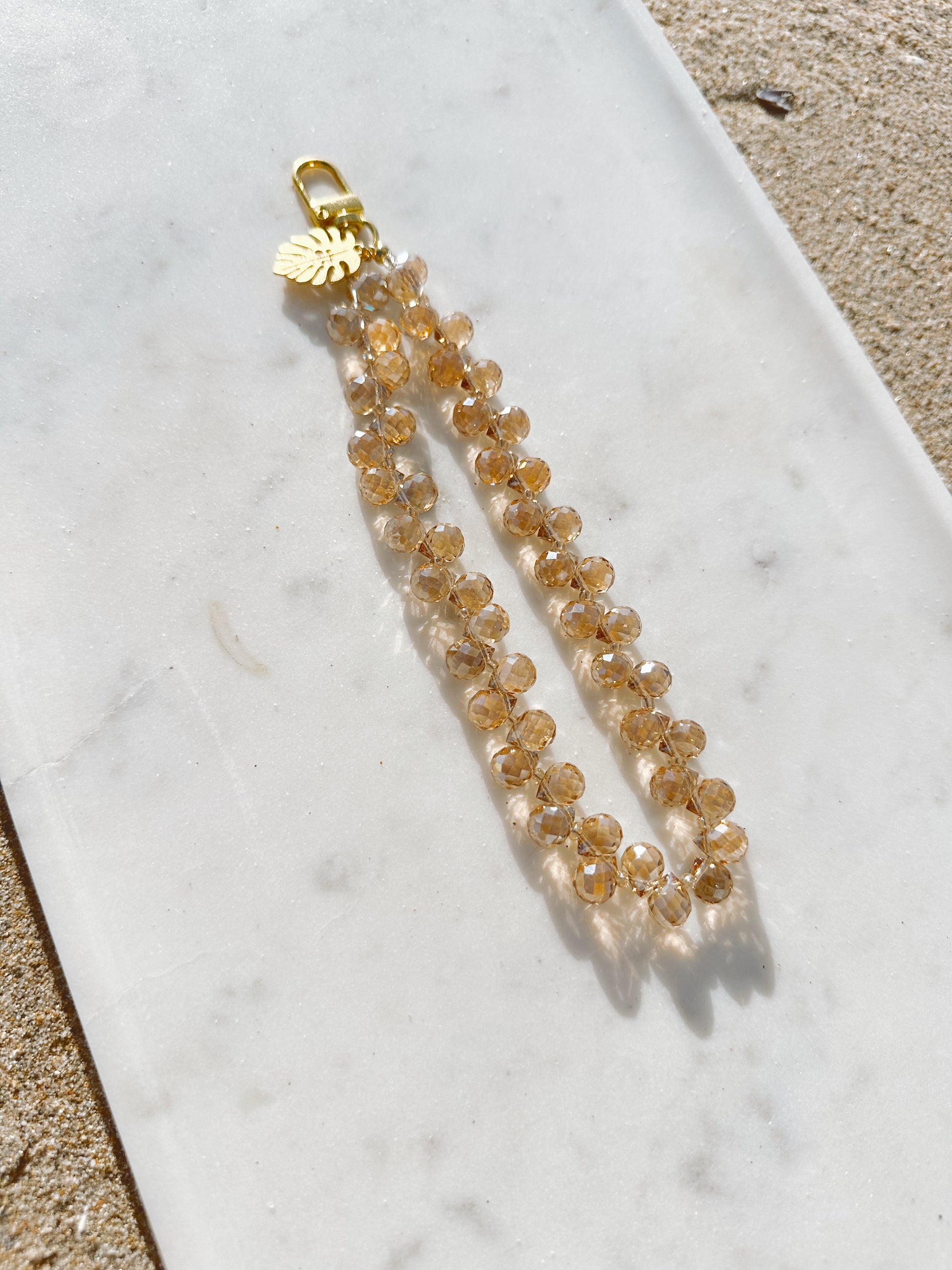 The Coffee Lux Phone Wristlet features faceted, warm-toned beads that shimmer softly in the light. Inspired by creamy lattes, golden hour, and effortless everyday style, this piece brings a subtle glow that feels polished, cozy, and elevated.